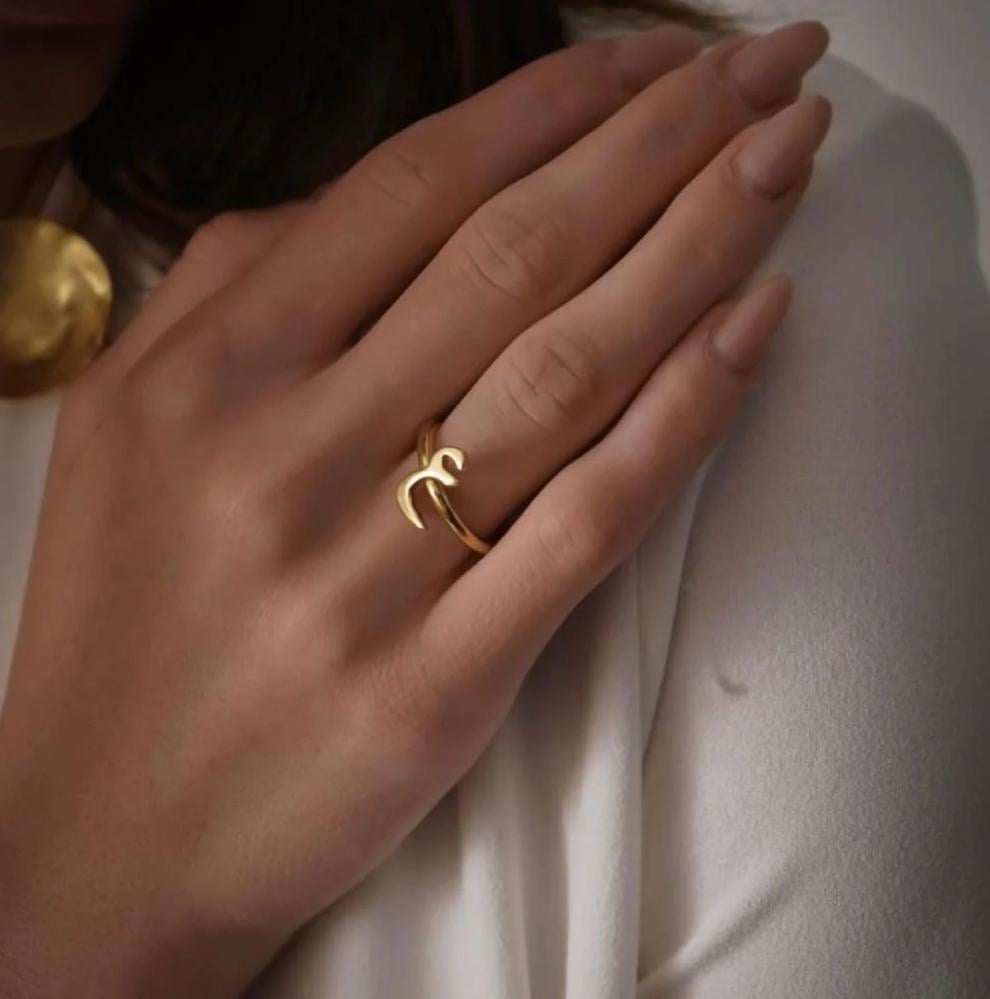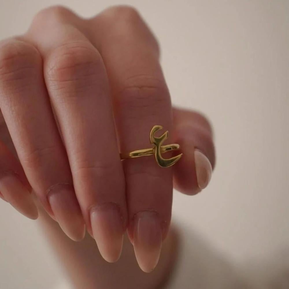 خواتم حروف عربية تتميز بتصميم شخصي راقٍ يجمع بين البساطة والفخامة، حيث يُصمَّم بالحرف الذي تختارينه ليعبّر عنك